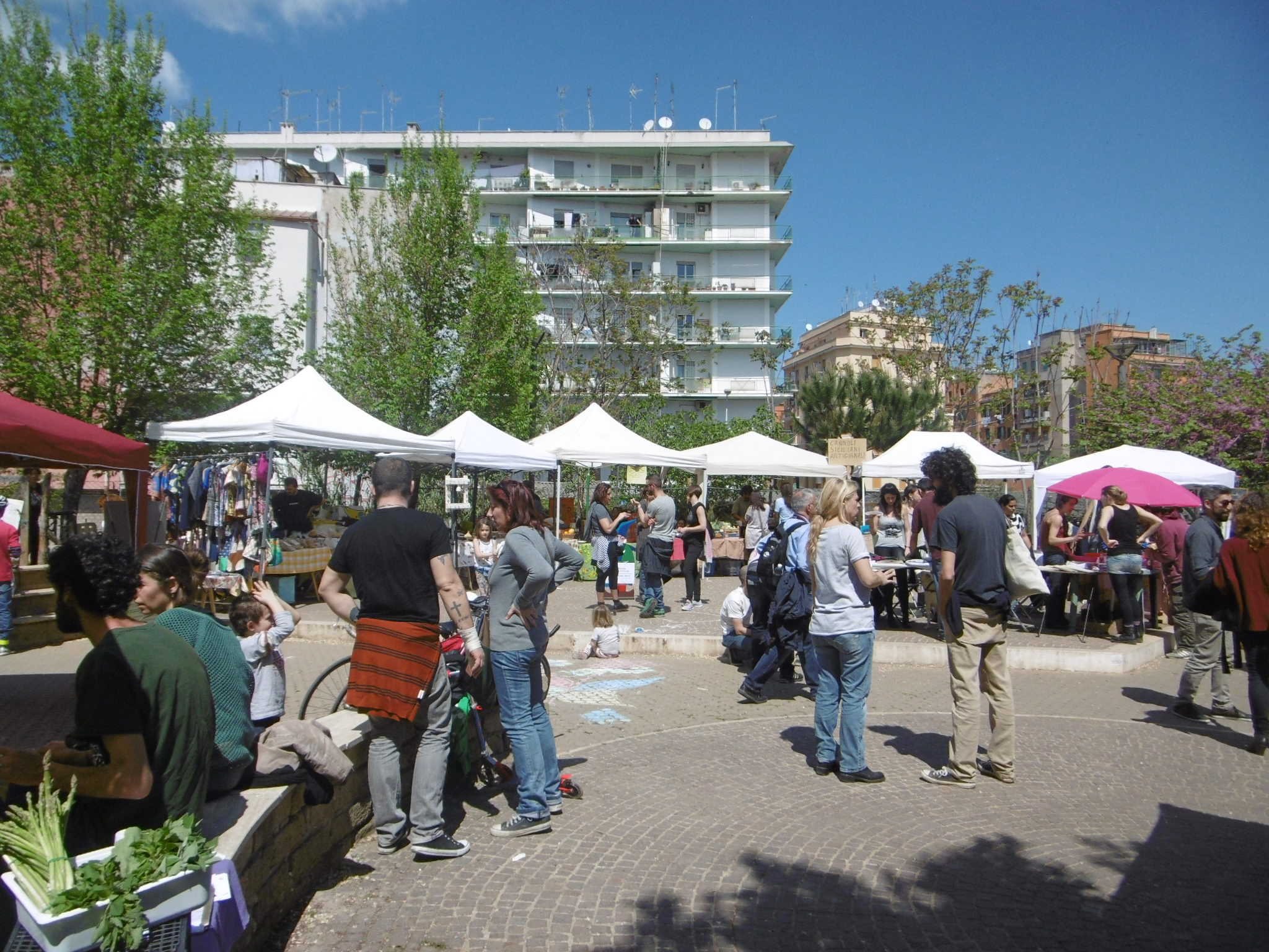 Ripulito, risistemato e dopo aver ricomprato un po’ di cose, ci accingiamo a ripartire, quando i nostri amici del Pigneto ci invitano alla festa del quartiere per il 25 aprile. La piazzetta e le strade adiacenti si trasformano in uno spazio libero e ci sarebbe la possibilità per noi di mettere un banchetto e cercare di autofinanziarci. Un ennesimo gesto di quella valanga di solidarietà attiva che, se da un lato è così spontanea, dall’altro non cessa di stupirci. Avendo solo due giorni di preavviso, facciamo le corse per organizzarci al meglio che possiamo. La prima idea è ovviamente provare a vendere kefir e kombucha. All’estero ci sono paesi dove funziona bene, in particolare l’Australia. Ricordo anche che a Quito una coppia di italiani vendevano kefir nella pizzeria che avevano temporaneamente in gestione. In Italia queste bevande non sono ancora conosciute, quindi prendiamo l’occasione per fare anche un po’ di diffusione, offrendo degli assaggi ed esponendo un cartello riassuntivo sulle proprietà benefiche che ne derivano. Altre idee che ci vengono sono centrifughe di frutta e verdura, sangria e vin brulé. Un 25 aprile all’insegna della solidarietà e della convivialità.